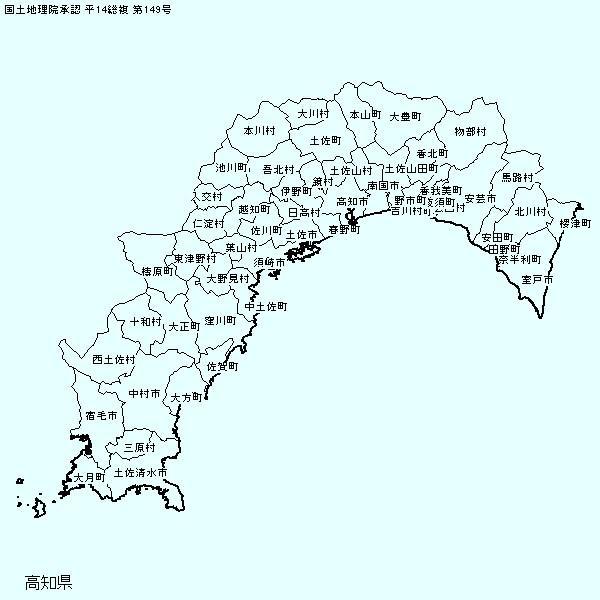 住所: 〒 高知県高知市丸ノ内1丁目2番号 電話: 総務 02 企画 04 国道 00世界地図TOP >高知県 県名:高知県 (Kouchi) 県庁所在地:高知市 (Kouchi) 面積:7,105km2 人口: 730,931人(15年) 関連サイト: 高知県庁ホームページ 中学受験・高校受験に最適! 書いて覚える白地図学習シート「高知広域都市計画総括図(pdf版)」の閲覧について 高知広域都市計画総括図(令和2年3月現在)は、以下のファイルから閲覧できます。 ※ 総括図は、区域区分、地域地区、都市施設等の位置や区域をおおまかに表示したものです。高知県白地図 県名・県庁所在地点なし 県名・県庁所在地点